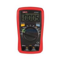 Портативный цифровой мультиметр UNI-T UT33A+ рассчитан на измерение напряжения AC и DC, сопротивления, силы AC и DC, емкости, тестирование диодов (падение напряжения), транзисторов (NPN или PNP-типа) и непрерывности электроцепи. Оборудован ЖК-дисплеем (максимальное отображаемое число — 1999), зуммером для сигнализации обрыва цепи и сигналов перегрузки по току.