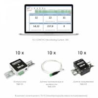 Комплект мониторинга Osnovo 10-10 состоит из ПО Osnovo Monitoring System 100 (OMS 100), десяти контроллеров Osnovo TMS-01, десяти датчиков измерения температуры и влажности воздуха Osnovo TMS-STH, десяти датчиков измерения напряжения Osnovo TMS-SV.